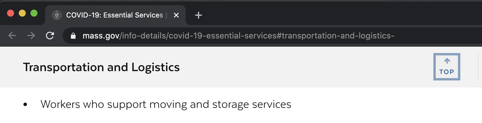 搬家属于Essential Service,麻省允许搬家和仓储,麻省州政府官网具体条款如下。
