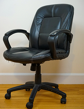 In this rendition of our office chair, we have increased the seat size and cushion for optimal comfort. The small lever under the cushioned seat allows you to adjust and customize the chair to your perfect seat height.